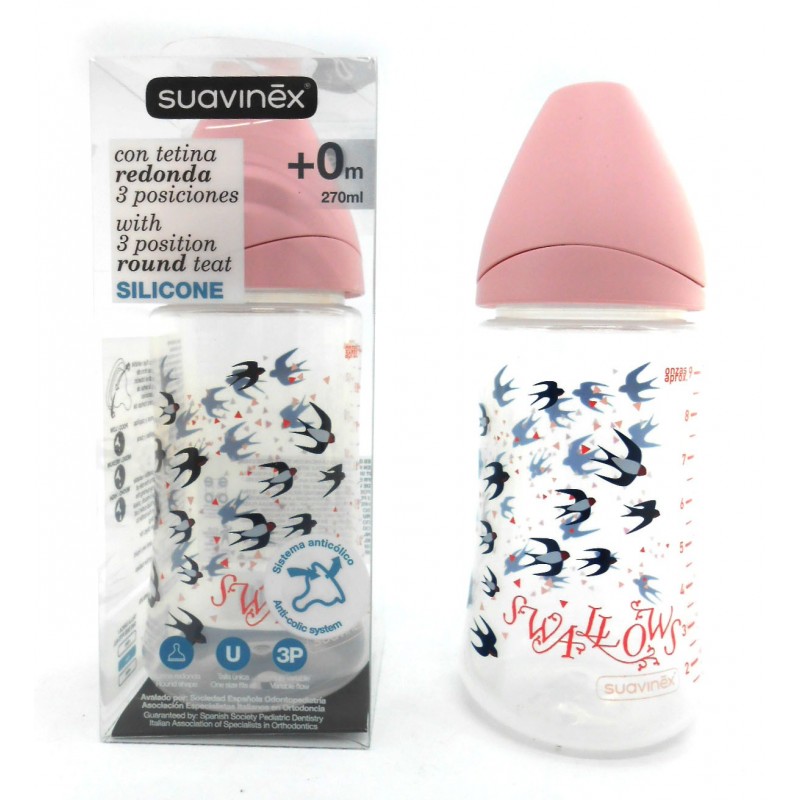 Botol Susu Suavinex - 270ml - Leher Botol Lebar - Tema Burung Swallow Pink