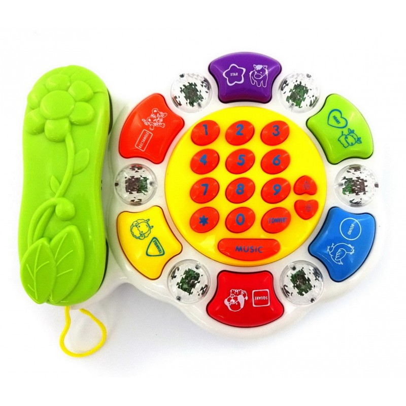 Mainan telepon yang memiliki tombol-tombol yang dapat mengeluarkan cahaya, lagu dan suara.