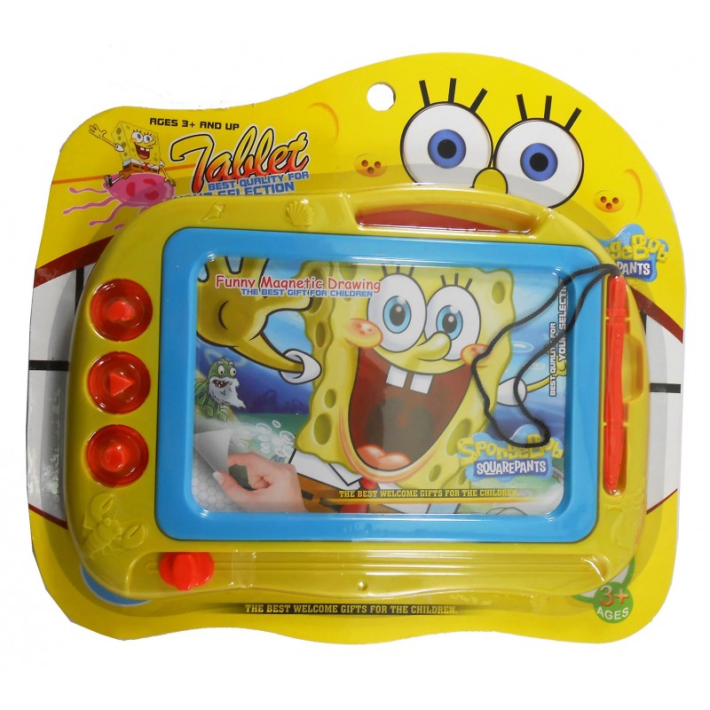 Mainan Doodle / Mainan Tulis Hapus dengan karakter SpongeBob, disertai dengan alat cetakan berbentuk hati, segitiga dan lingkaran.