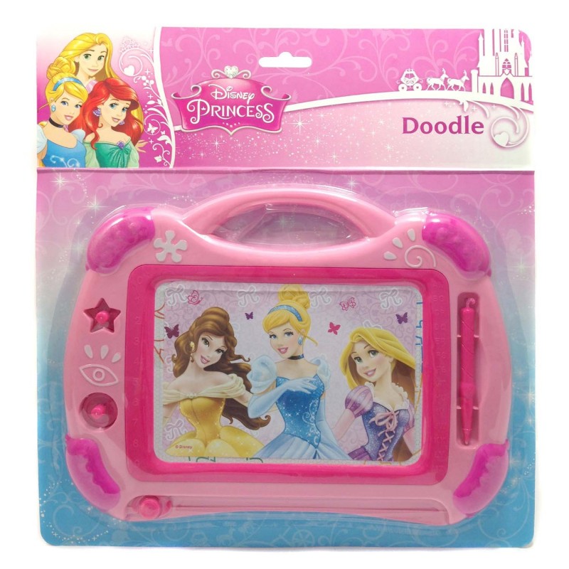 Mainan Doodle / Mainan Tulis Hapus dengan karakter Princess, disertai dengan alat cetakan berbentuk bintang dan lingkaran.