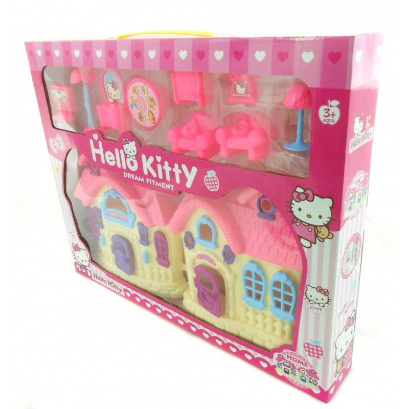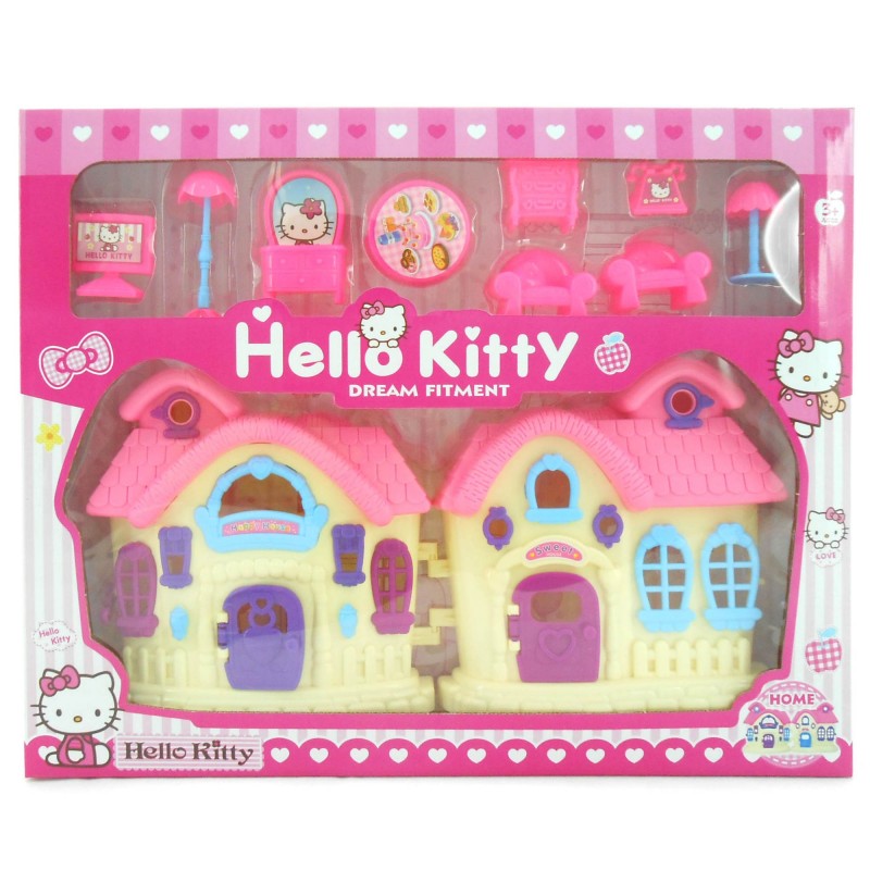 Mainan Rumah-rumahan Hello Kitty, dilengkapi dengan furniture ruang tamu dan berwarna pink sesuai dengan tema Hello Kitty
