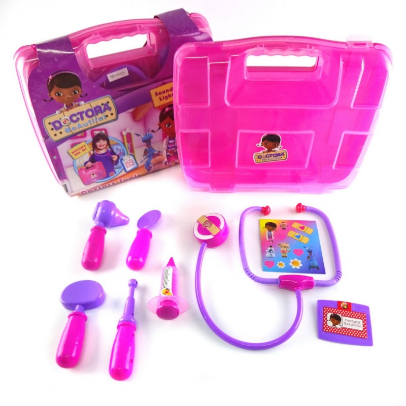 Mainan alat kedokteran Doc McStuffins yang terdiri dari berbagai jenis alat kedokteran, lengkap dengan tas untuk penyimpanan. Beberapa alat dapat mengeluarkan cahaya dan suara.Recipient :