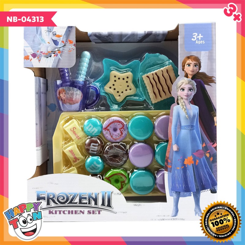 Mainan hidangan penutup frozen yang tediri dari donat, biskuit, makaron, cokelat, permen, sendok, garpu, piring, gelas dan lainnya. Ukuran kemasan: 26x27.5x9 cm NB-04313Recipient :