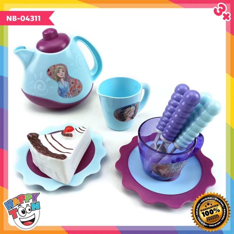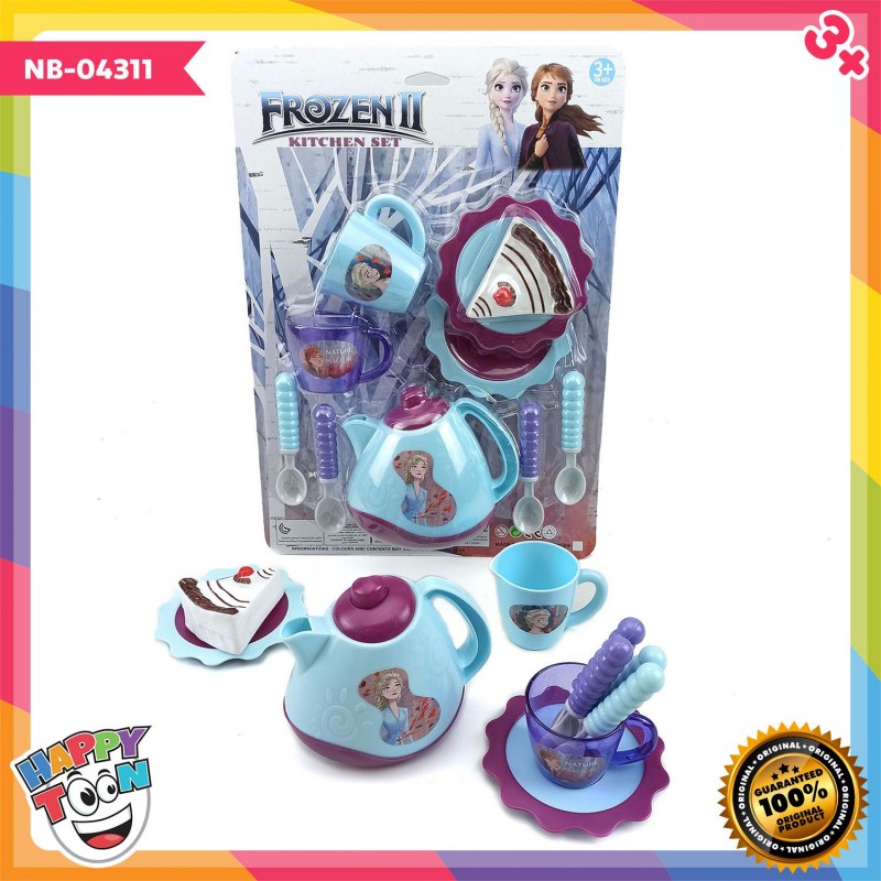 Mainan Kitchen Set yang terdiri dari teko, piring, sendok, cangkir, kue tart memiliki warna biru dan ungu pastel yang sangat menarik dengan stiker frozen. Ukuran kemasan: 25.5x35.5x9 cm NB-04311