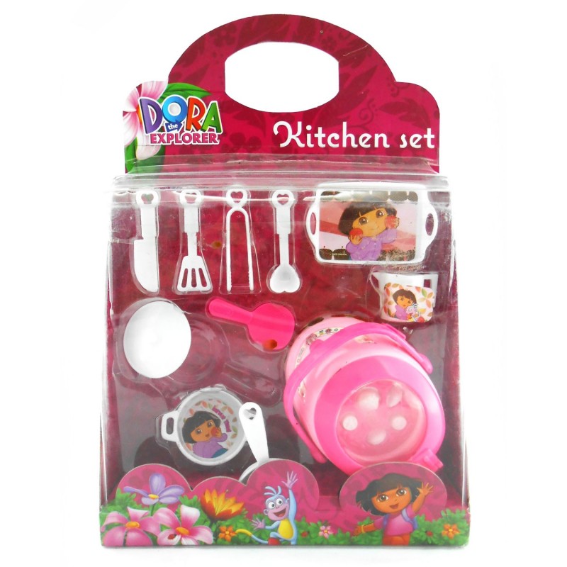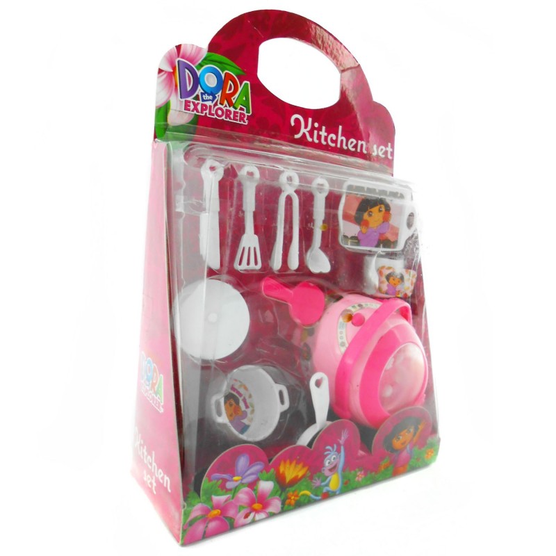 Mainan masak-masakan dengan Karakter Dora. Mainan ini dari bahan plastik sehingga aman untuk anak.