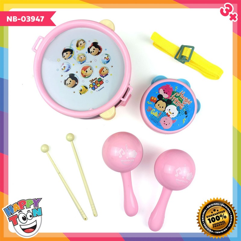 Mainan alat musik Tsum Tsum yang terdiri dari drum unik, marakas berwarna pink pastel, dan tamborin. Ukuran kemasan 42x30x7 NB-03947