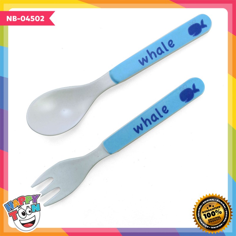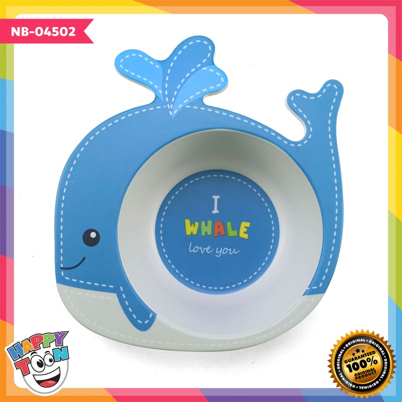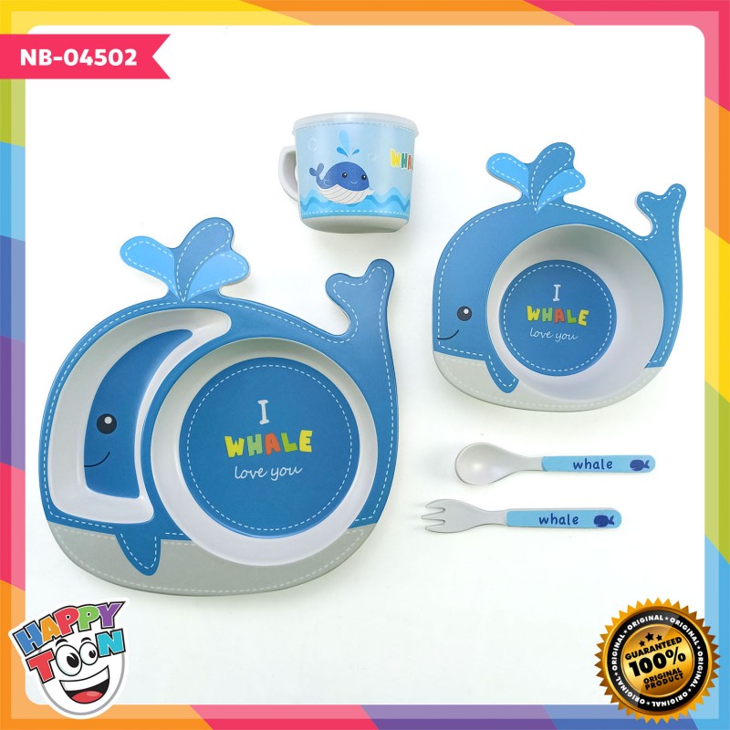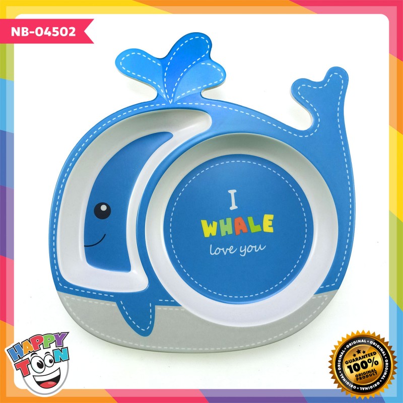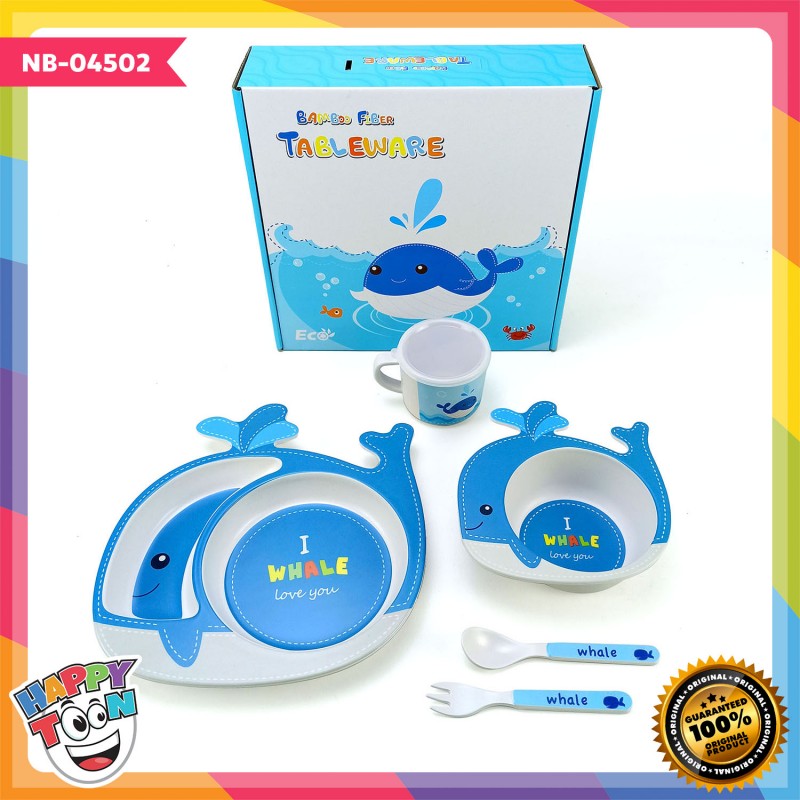 Bamboo Fiber Feeding Set Tempat Peralatan Makan Bayi Anak - Whale - NB-04502