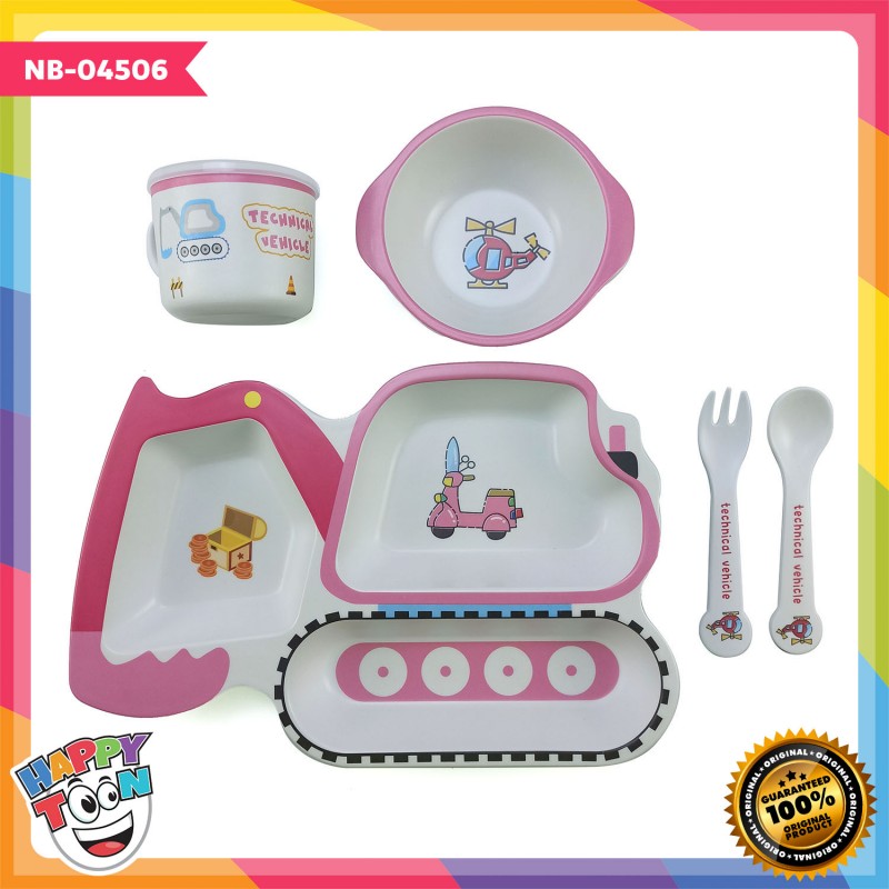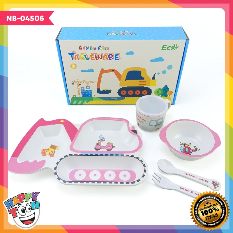 Bamboo Fiber Feeding Set Tempat Peralatan Makan Bayi Anak - Vehicle - NB-04506