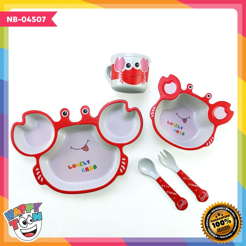 Bamboo Fiber Feeding Set Tempat Peralatan Makan Bayi Anak - Crab - NB-04507