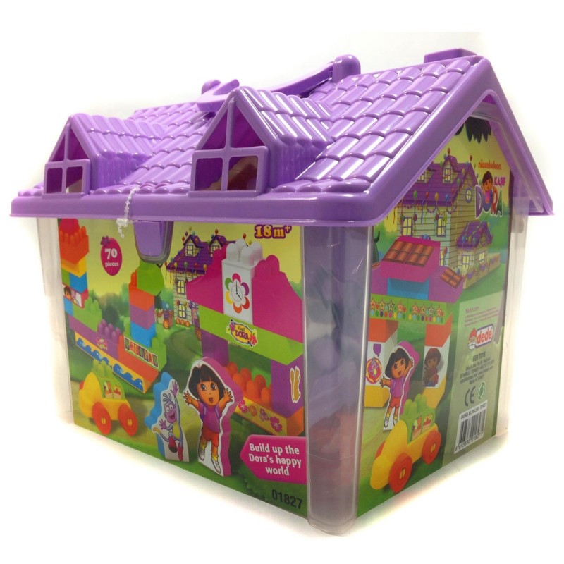 Mainan Blok berkarakter Dora yang memiliki wadah berbentuk rumah. Terdiri atas 70 blok dengan berbagai jenis bentuk dan juga stiker yang dapat ditempelkan pada blok.Recipient :